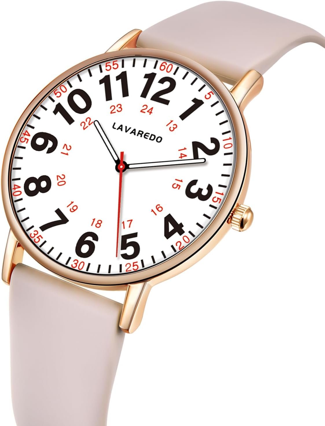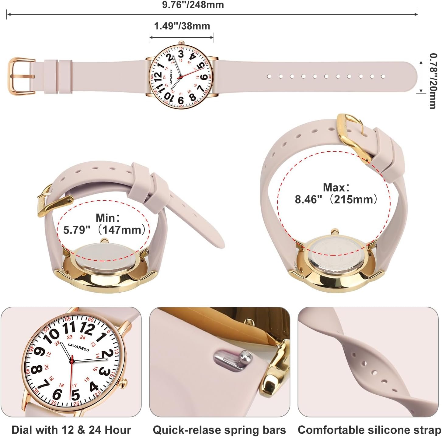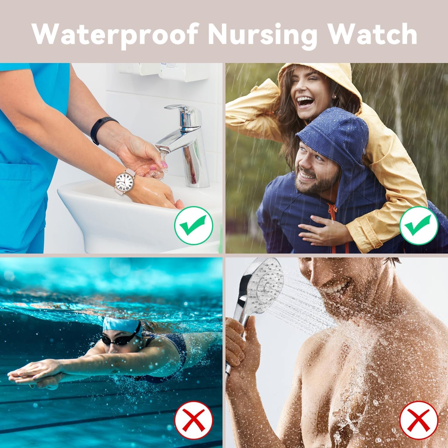 Nurse Watch for Nurses Doctors Women Men,Waterproof Analog Watches with Luminous Dial and Japanese Quartz Movement,Easy to Read Military Time Watch with Second Hand, 12/24 Hours,Silicone Band