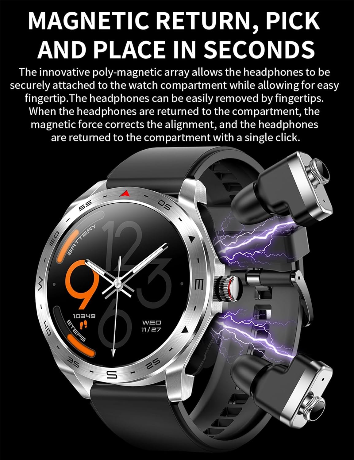 - 【Ultra thin body design】3 in 1 Smart Watch Designed by ATEVIX is a Perfect Combination of Smart Watch, Bluetooth headphone and Speaker. Smart watch can serve as 24 hour continuous heart rate monitor, sleep monitor, pedometer, calorie counter and step counter, TWS Bluetooth Headphone Ingenious storage In the side of the Watch.