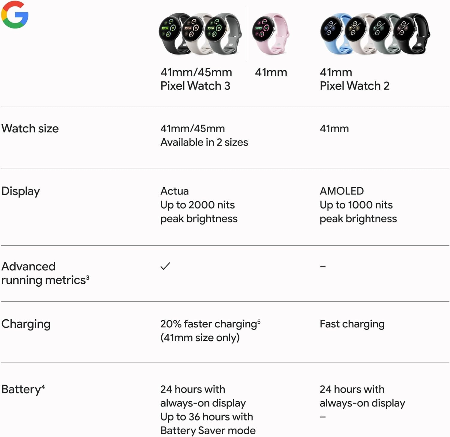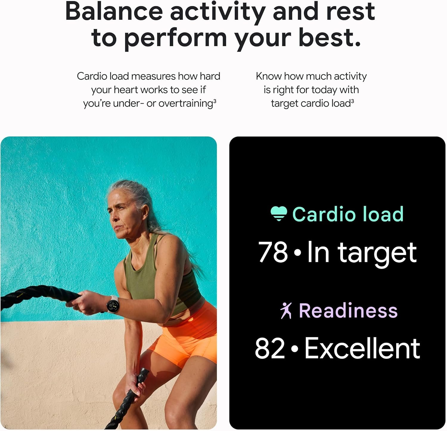 The Google Pixel Watch 3 is designed for performance. The cutting-edge Actua display is bigger, brighter, and ultra responsive.[1,11] Beat your best times with advanced running features from Fitbit, then use all-new readiness and cardio load tracking to balance rest.[3] And stay on top of your day with help from Google.