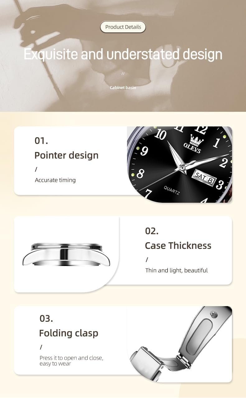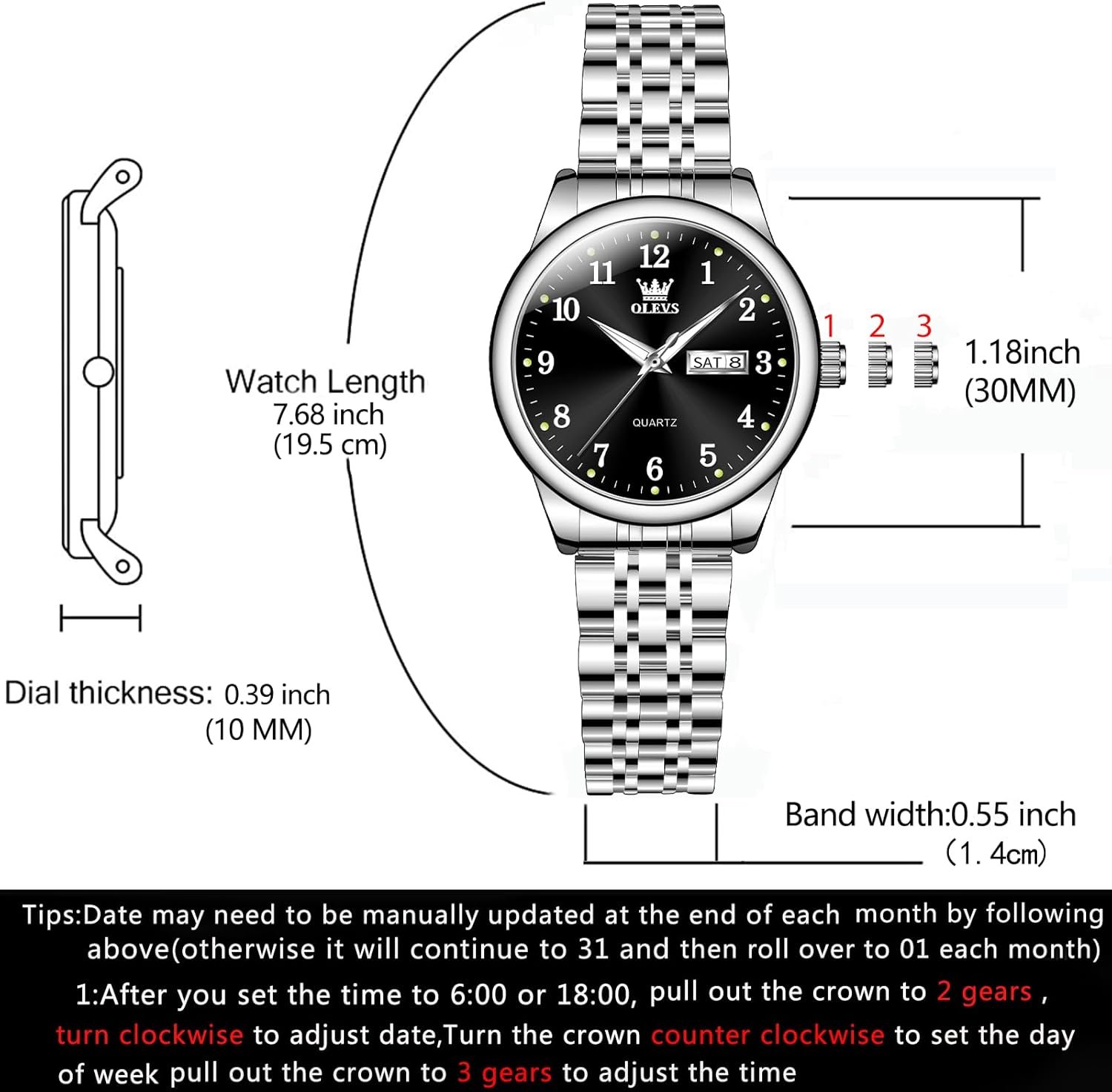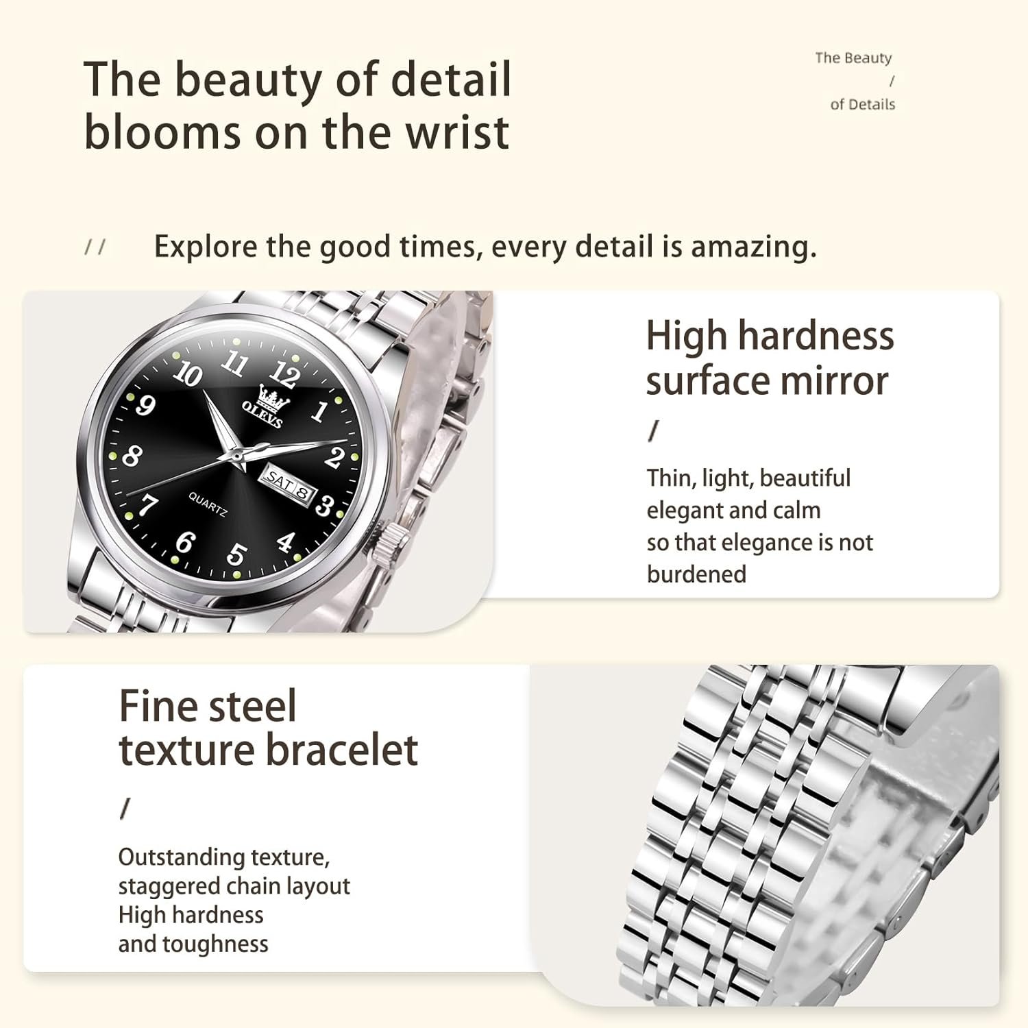Watches Date and Day Watches with Silver Gold Stainless Steel